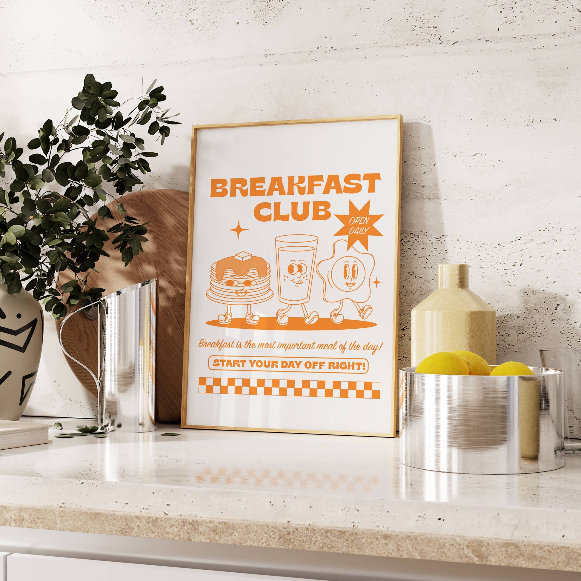 Add a charming touch to your kitchen or dining area with this adorable Breakfast Club Retro Diner Style Poster. Featuring an array of cute retro-style characters, this poster captures the essence of a bygone era and adds a nostalgic flair to any space.